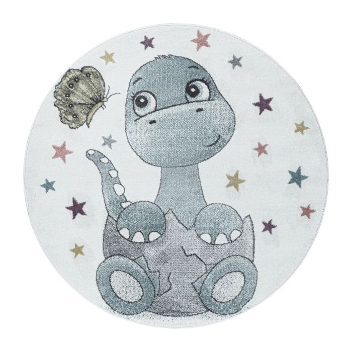 Funny Dino detský koberec nízky vlas kruh Ø 160cm modrá