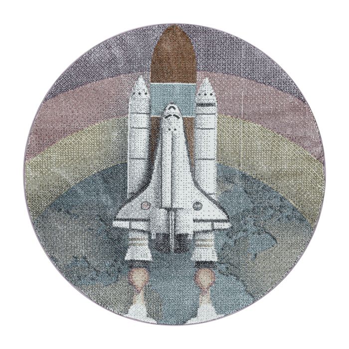Funny Raketa detský koberec nízky vlas kruh Ø 120cm modrá